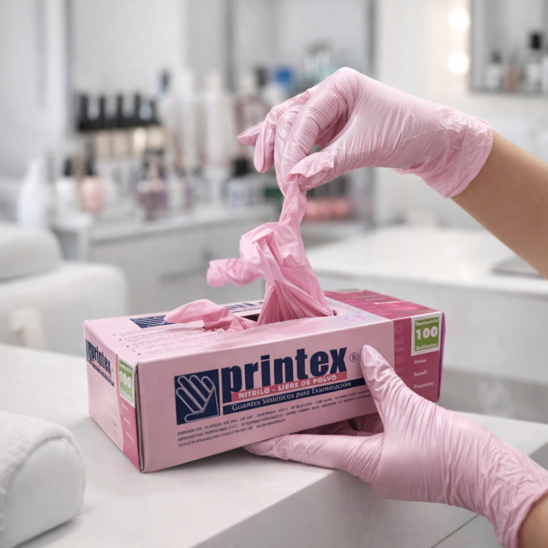 Guantes de Nitrilo Reforzados Printex x100 unidades - Talle M - Rosa Perlado