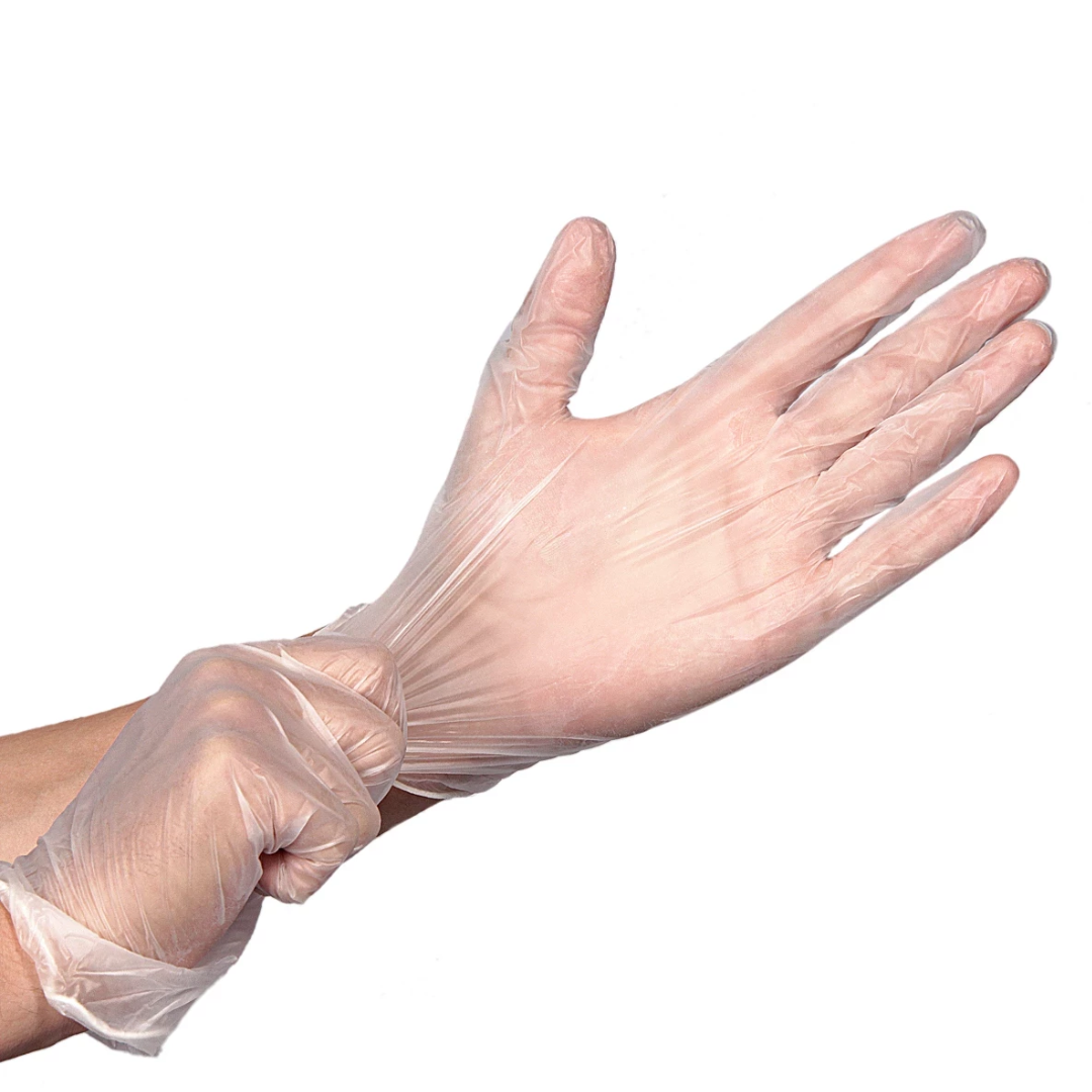 Guantes de vinilo descartables de color transparente caja por 100 unidades de excelente nivel de resistencia mecánica. Relación precio calidad imbatible.